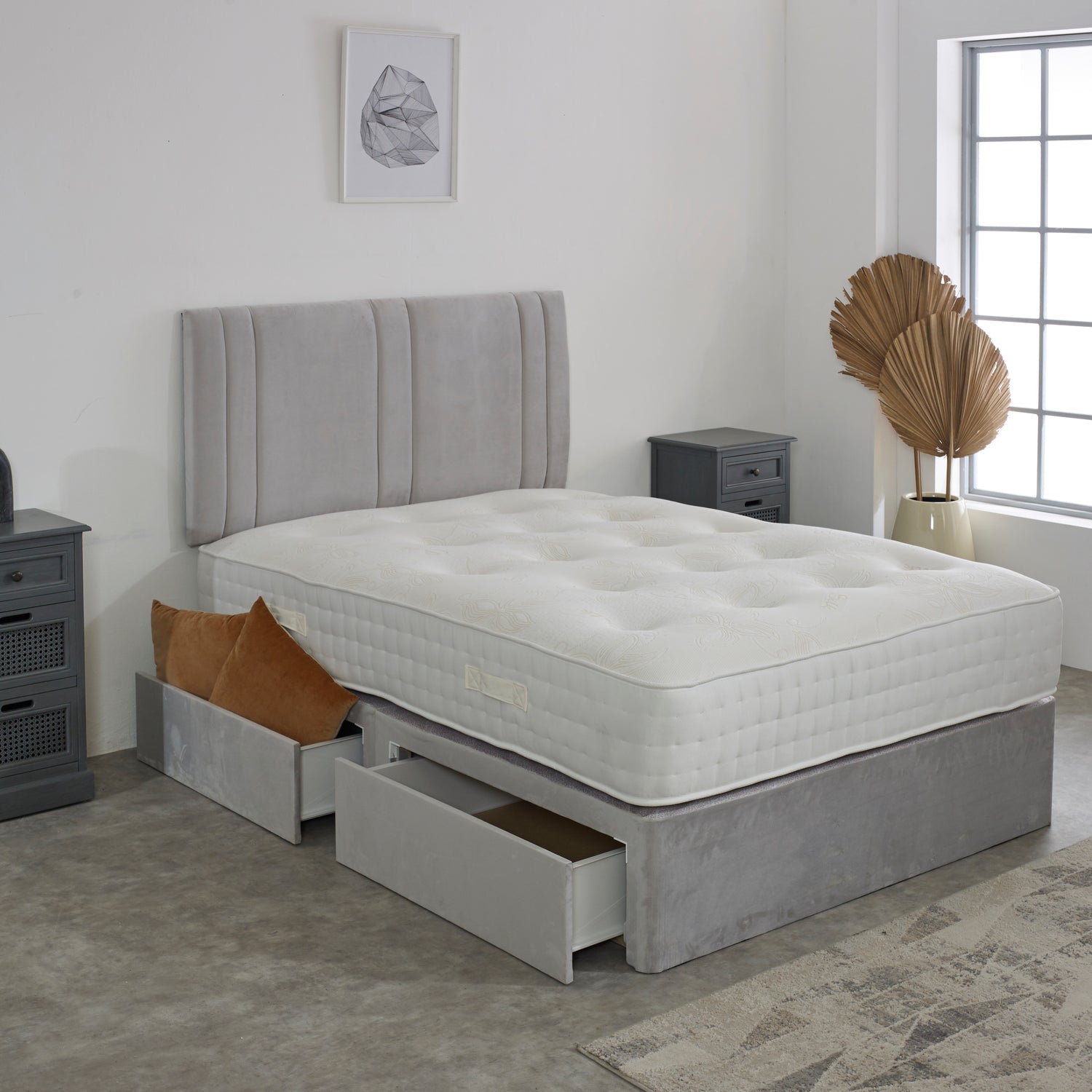 Each divan bed comes with a matching 26" headboard, or you can upgrade to our 54" floor-standing headboard for a stunning statement look.